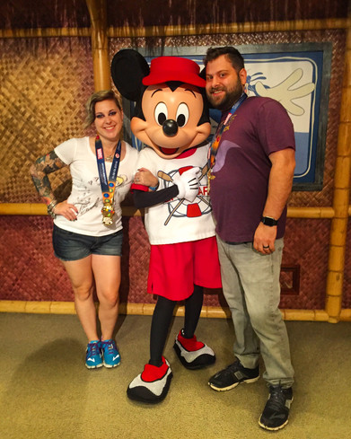 Day 1 We landed over an hour early, but spent two hours getting our rental car. What I thought felt like a smooth trip turned messy very quickly. After getting the car, we hopped on the highway and headed to Disneyland Hotel. Seeing the signs made me feel at home. As we pulled up to the hotel I saw all of the RunDisney stuff for the races. It finally felt real. The first thing I saw as we enter the hotel was Goofy, Chip and Dale. Already characters and we haven't even checked in yet! After checking in, our room wasn't ready so we left our luggage with the bellhop and walked to Downtown Disney. I was ready for anything. I tried not to compare Disneyland to Disney World because I knew there was a size difference. I did not realize how walkable it would be. We entered Downtown Disney, grabbed some food and explored the shops. We grabbed pizza from Napolini, which was super yummy. Shortly after our room was ready. After unpacking we worked up an appetite. So we headed to our dinner reservation at Storytellers Cafe located at Disney's Grand Californian Hotel and Spa. Dinner is unfortunately the only dining experience that does not have characters. You can order from the menu or enjoy the buffet. We decided to enjoy the buffet. After dinner we headed back to hotel to prepare for our early morning. Day 2 The alarm went off around 5am. Justin and I got up, got dressed and went for a short run around Downtown Disney. We ran just over 2 miles. Then, finally got to walk down the original Main Street USA. The park that began my obsession. The butterflies went crazy in my stomach as I steps through the gates for the first time. Main Street was decorated and Christmas tree up. We had a breakfast reservation at the Plaza Inn at 8:40am. The kid inside was jumping up and down screaming in excited at being able to meet all the characters. We grabbed our food, including my Mickey shaped waffles. It's not a true Disney breakfast without a Mickey Waffle. Then I saw him standing at the table next to us, Max! One of the many characters I have yet to meet, but he will be the first of my trip. He approached the table and I jumped up before my husband or parents could even consider moving. We hugged, we posed, it was awesome! I was impressed with the Plaza Inn Character breakfast. They had so many characters walking around. So, after meeting and taking pictures with all the characters, it was time to head over to the RunDisney Expo. After the expo we returned to Disneyland, wide eyed and ready to ride every ride, meet every character and eat all the yummy food. We hopped on Snow Whites ride which broke down moments in to us getting on... We then ran over to Mr. Toad's Wild Ride, which was one of my fav's at Disney World. We rode multiple other rides including Nemo's Submarine Adventure which Justin and I got soaked in. Then we headed to our next dinner reservation at Carnation Cafe. After dinner we stepped into Main Street USA as the lights went out and snow started to fall as they lite up Sleeping Beauties Castle. It gave me the feels. Then it was time to embrace the madness of finding a spot to watch the fireworks. We found a horrible spot, the show was delayed, but Disney never fails me in making it up with fireworks. Well, then it was off to bed for a super early morning. Our first RunDisney race.